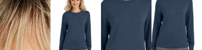 Remember that long weekend feeling any day of the week in this versatile, comfortable crew that can worn at work or while hanging out. 7.2-ounce, 73/22/5 modal/polyester/elastane Easy wash and wear Rib knit neck, cuffs and hem Rib knit notch detail at collar TM logo woven label at left hem