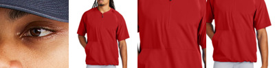 Knock it out of the park with this extra roomy, moisture-wicking short sleeve jacket. 3.5-ounce, 90/10 poly/spandex 100% poly tricot mesh insert Snag-resistant Tag-free label Contrast tonal mesh panels at shoulder Front pouch pockets Adjustable fit at hem with side toggles