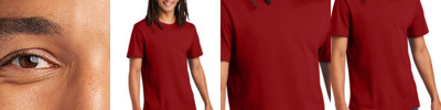 * Eco-Revive(r) product featuring 95% recycled polyester/5% cotton * Wicks moisture * Ladies' fit * Tag-free label * V-neck collar * Set-in sleeves