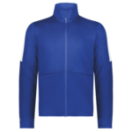 Go out to the game in this moisture-wicking hooded jacket. 3.5-ounce, 90/10 poly/spandex 100% poly tricot mesh insert Snag-resistant Tag-free label Attached hood Contrast tonal mesh panels at shoulder and under arms Front pouch pockets Adjustable fit at hem with side toggles