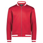 Inspired by classic double knit sets, this moisture-wicking jacket shows that you are part of the team. 100% recycled polyester double knit Tag-free label Self-fabric locker loop Coil zipper Side slash pockets Colorblock self-fabric detail on sleeves