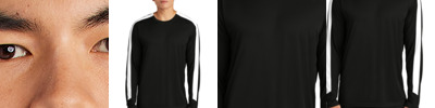 * 100% polyester wicking knit with color secure(r) technology that helps prevent dye migration * 90% polyester/10% spandex wicking mesh inserts with color secure(r) technology that helps prevent dye migration * Wicks moisture * Tag-free label * Low profile tapered collar * Raglan sleeves * Modified dropped back hem