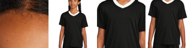Top off your game with this Competitor United V-neck that features moisture wicking and sun protection. 3.8-ounce, 100% poly interlock with PosiCharge ® technology UPF rating of 30+ Tear-away label Athletic V-neck Contrast colorblocking at neck and side