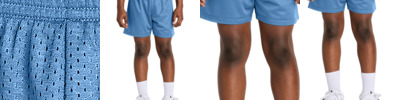 Keep up the pace in a moisture-wicking, open hole mesh short with PosiCharge technology which locks in your logo. 3.4-ounce, 100% open hole poly mesh with PosiCharge technology 2.5-ounce, 100% poly tricot lining Moisture-wicking Open-hole mesh 5-inch inseam Elastic waistband No drawcord Tear-away label