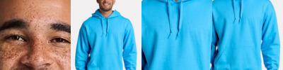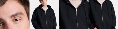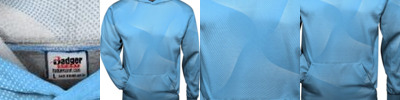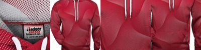 - Kangaroo pocket with woven front flap covered zippered pocket