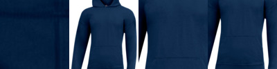 - Three-piece hood with dyed-to-match drawcord