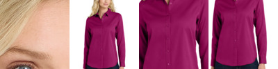 The ultimate in professional performance, this wrinkle-resistant shirt also releases stains. The soft, smooth fabric gives you a polished look that's comfortable enough for year-round wear. 4.3-ounce, 55/45 cotton/poly twill Stain release Wrinkle-resistant Open collar Dyed-to-match buttons Back yoke