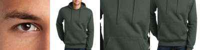The casual ease of soft French terry in a versatile pullover. 6.5-ounce, 59/41 combed ring spun cotton/poly French terry Tag-free label Three-panel hood Dyed-to-match elastic drawcords with black plastic tips Integrated front pouch pocket