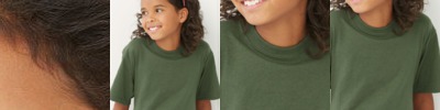 - Double-needle stitched sleeves, bottom hem, and front neck