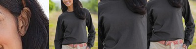 - Seamless 1x1 rib collar, rib cuffs with concealed seams