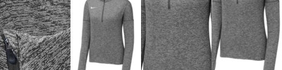 We're proud to offer this direct-from-retail Nike style, while supplies last. This super-versatile piece is a Nike bestseller. With a back mesh panel for enhanced breathability, this moisture-wicking cover-up sets you up for the long haul with ergonomic thumbholes and a structured collar that stays in place and helps lock in warmth. The 1/2-zip design lets you control the ventilation. A contrast heat transfer Swoosh design trademark is on the right chest. Solids made of 5.5-ounce, 88/12 polyester/spandex jersey Dri-FIT fabric (front) and 5.3-ounce, 89/11 polyester/spandex Dri-FIT fabric (back). Heathers made of 5.75-ounce, 88/12 polyester/spandex jersey Dri-FIT fabric (front) and 5.3-ounce, 89/11 polyester/spandex Dri-FIT fabric (back). **